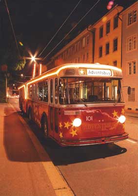 Am 19. Dezember 2015 durften wir drei Fahrten des Adventsbuses in Winterthur begleiten. Es war ein wunderschönes Erlebnis. In weihnachtlichem Dekor und dezenter Beleuchtung verbreitete der Bus Adventsstimmung. Unsere Weihnachtslieder und eine passende Geschichte machten die Fahrt für alle Besucher unvergesslich